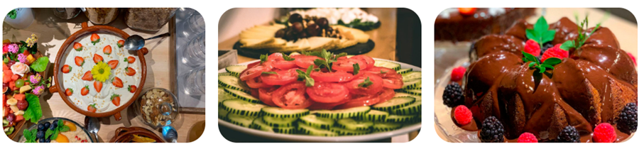 - Pension complète : Brunch et dîner. Tous les repas sont Bio, faits avec des ingrédients locaux et végétariens. Possibilité d’avoir des alternatives véganes.